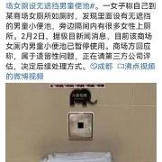 8月13日,有网友在微博爆料称自己在商场女厕所如厕时发现厕所里有一个无遮挡的男童小便池。
