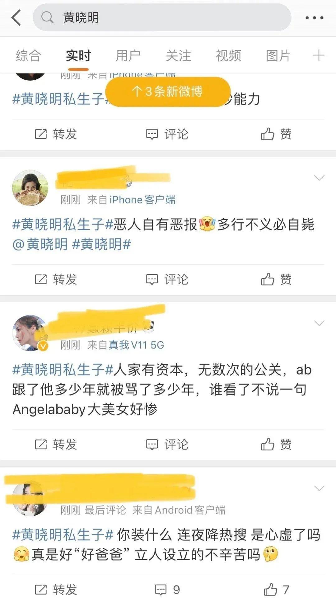 目前,在微博搜索“黄晓明”,出现的多个关联词与“离婚” “二婚” “私生子” 等内容相关,引发网友热议。