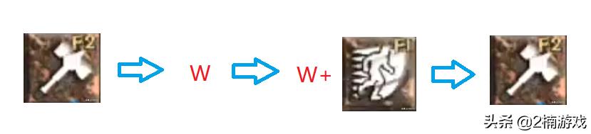 第三步:按“w”切换到副手,再同时按“w”+"F1"切回到主手,注意这里"w"按的速度要稍稍比"F1"快一点点。如果操作成功,那么这时左边的技能依然是“祝福之锤”。