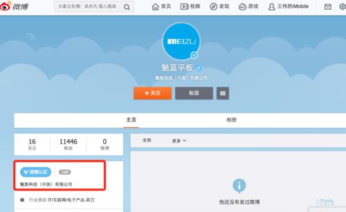 笔者今天逛微博的时候发现,魅族已悄悄的注册了“魅蓝平板”的微博账号,并且加了蓝色V认证,并关注了一系列魅族官方微博和魅族相关高管个人微博,目前还没有发布一条微博。魅族这次使用的是魅蓝品牌。