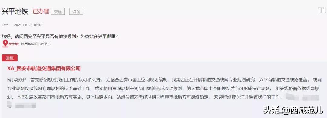 问:请问西安至兴平是否有地铁规划?终点站在兴平哪里?