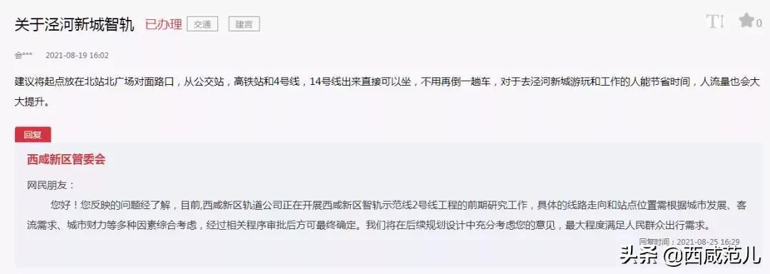问:建议将起点放在北站北广场对面路口,从公交站,高铁站和4号线,14号线出来直接可以坐,不用再倒一趟车,对于去泾河新城游玩和工作的人能节省时间,人流量也会大大提升。