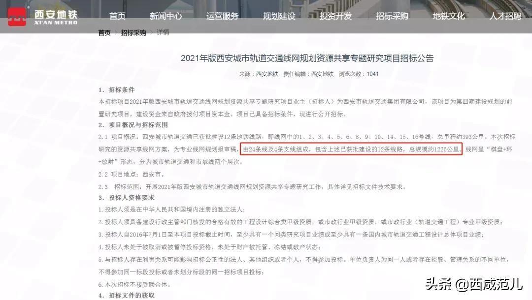 9月1日,西安地铁官网更新一条《2021年版西安城市轨道交通线网规划资源共享专题研究项目招标公告》,内容不多,但劲爆十足。