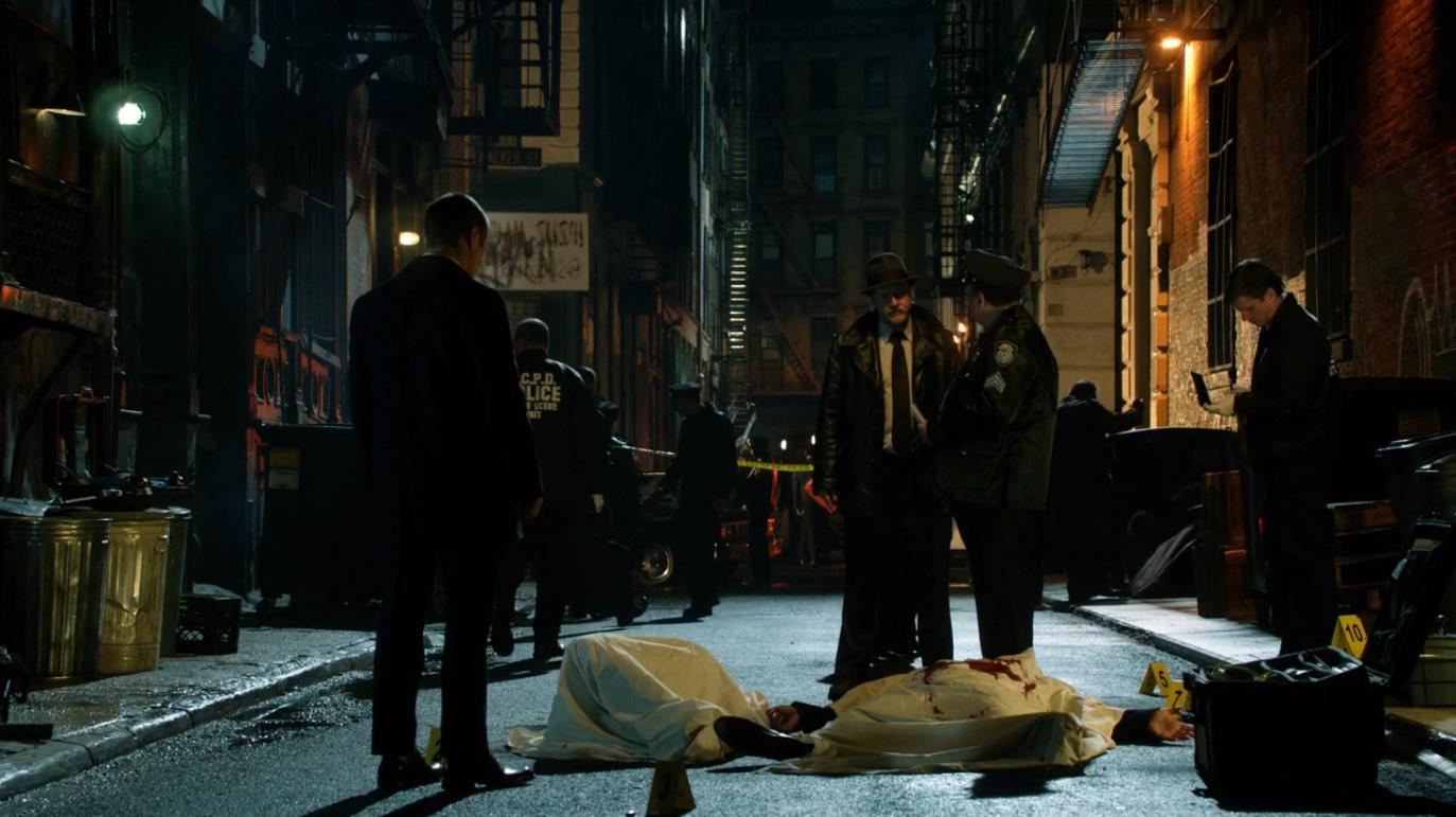 警探戈登今天刚刚正式入职,他是一个极有正义感且不愿滥杀无辜哪怕是罪犯的警察。然而这一切都和他的搭档布洛克的价值观相反,布洛克是一个懒散八面玲珑和哥谭各路势力都有所接触的老警察,他深深地明白如何在这样的哥谭市活着。他们俩一起处理的第一件案子就是韦恩父母的死,韦恩因为受到了惊吓并不愿意开口交流,戈登主动去找韦恩聊天,布洛克看清楚死的人是韦恩夫妇以后,并不想接这个案子,想甩给重案组。因为韦恩夫妇是当地最有钱最有权的夫妇,如果这件事不能尽早的破案,那么他们两个人会面临很大的压力。