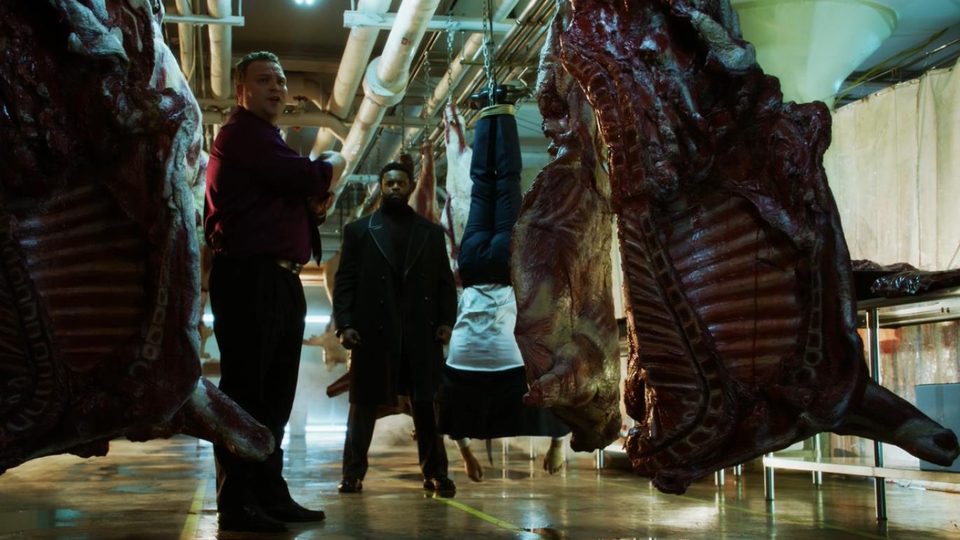 他见门开山的问菲什那天和布洛克说了什么,菲什虽然没有明说,但是她不放戈登走,戈登就明白了是布洛克和菲什设计陷害了大高个。想要这件案子尽快破案而隐藏背后真正的主谋,大高个不过就是个替罪羔羊,戈登弄明白了但是也走不掉了,两拳难敌四手戈登被菲什抓了起来,送到了屠宰场打算除掉戈登。