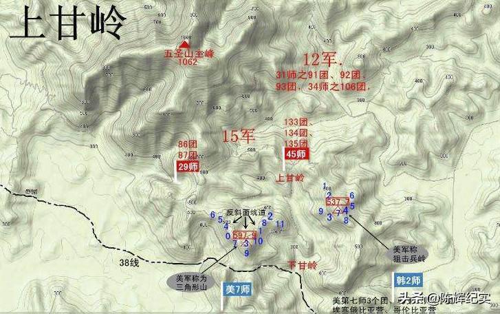 背 景:上甘岭战役是朝鲜战争后期僵持阶段的一次主要战役,英文称为Battle of Triangle Hill。战役由美国第9军发动,以争夺朝鲜中部金化郡五圣山南麓村庄上甘岭及其附近地区的控制权为主,属于“联合国军”金化攻势(Operation Showdown)的一部分。此役前后历时43天,在3.7平方公里的地区,共发射炮弹超过230万发,双方伤亡3万多人。此战,在中美两国都产生了深远的影响。