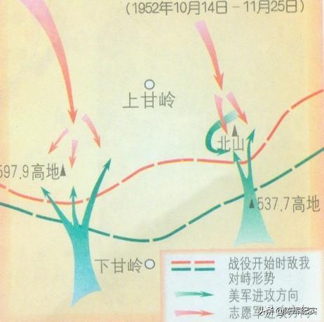 在朝鲜五圣山的南面,有个小山村叫上甘岭。在上甘岭的两侧有两个小山头,右边是597.9高地,左边是537.7高地北山,这两个山头加起来只有3.7平方公里。