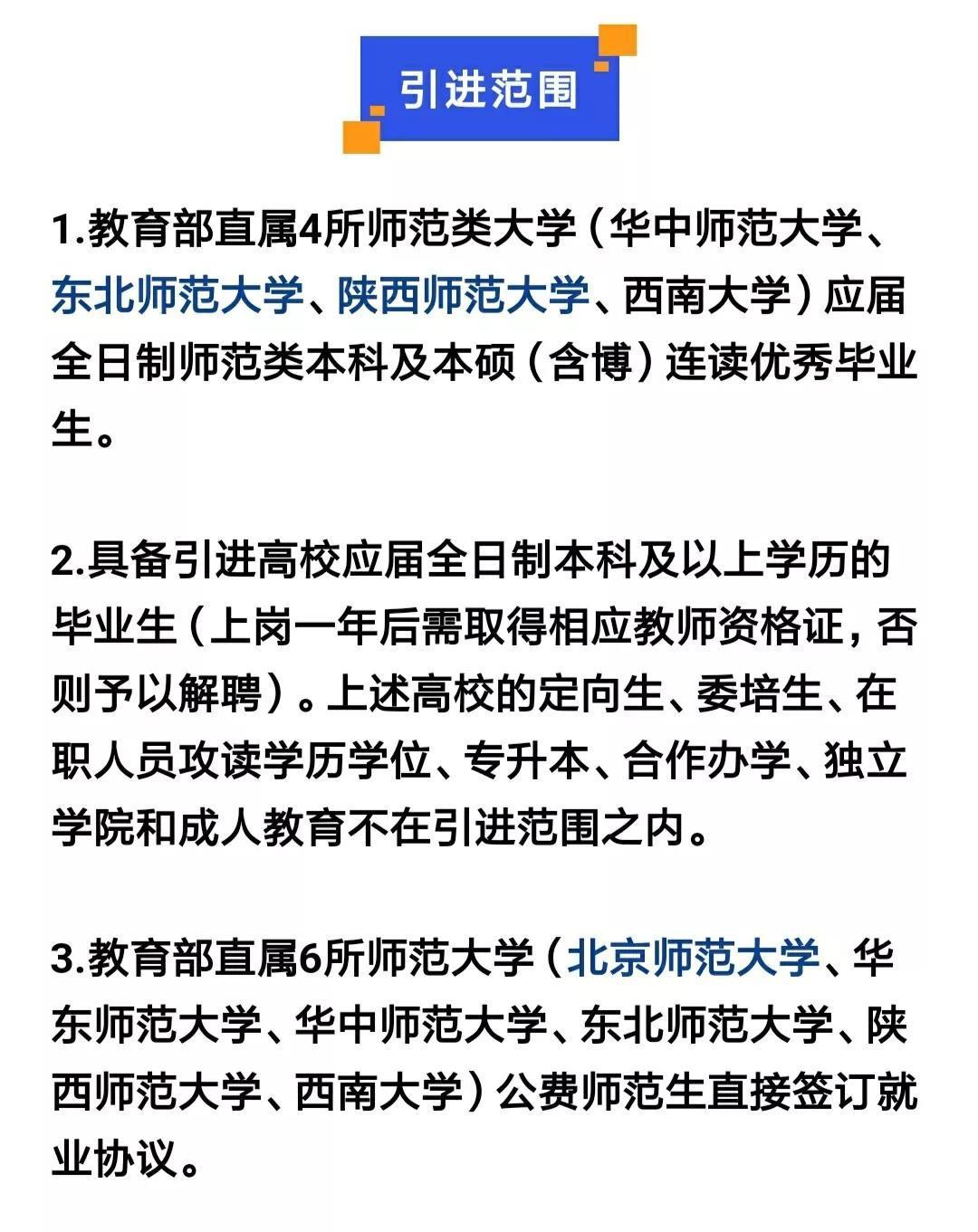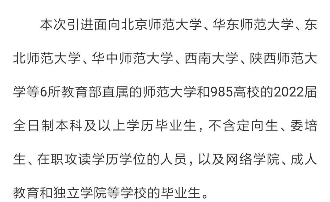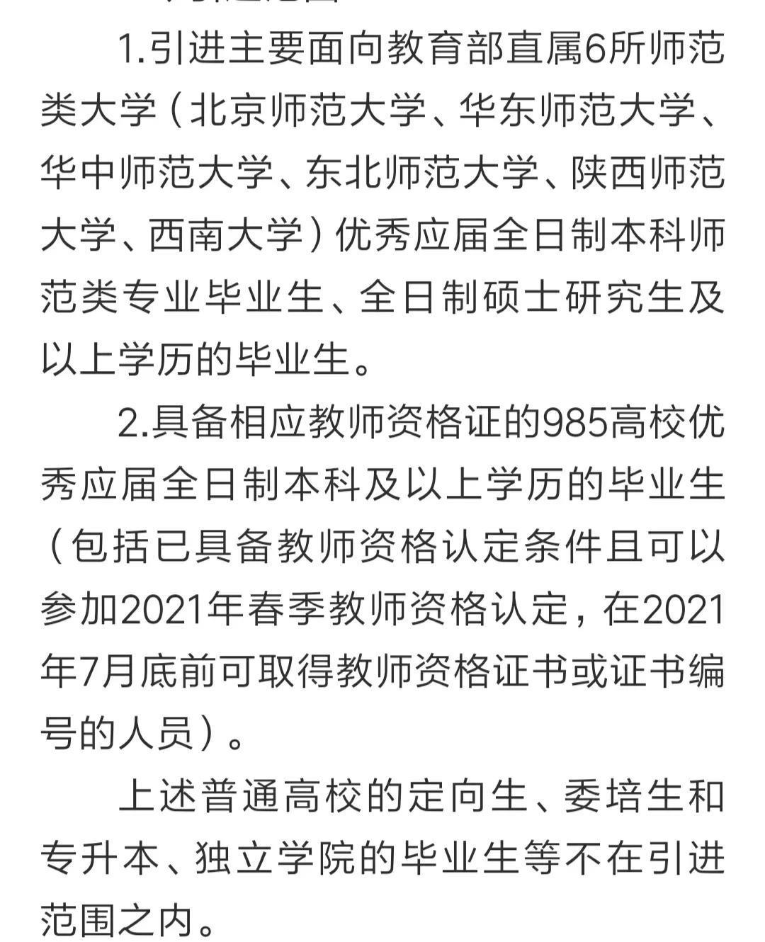 2021年肥西县教育系统面向2022届部分高校引进人才,引进范围:1.教育部直属的6所师范大学;2.国内985高校的全日制本科以上。
