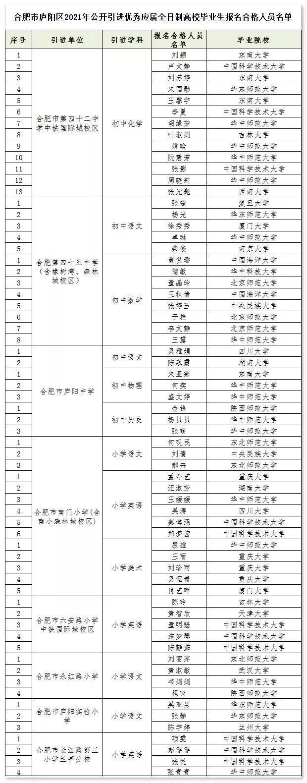 2021年,庐阳区招聘7名中学老师、16名小学老师,引进范围:1.教育部直属6所师范大学;2.具备教师资格证的985高校毕业生。