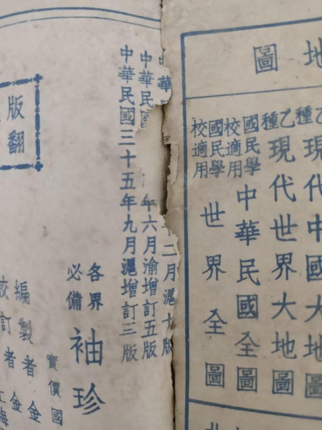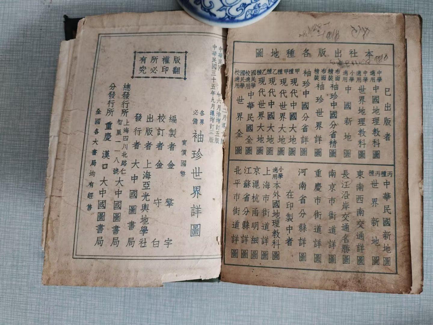 1946年9月,中华民国时期的地图册,里面有世界地图和中国地图,反映了第二次世界大战结束后的世界新格局。