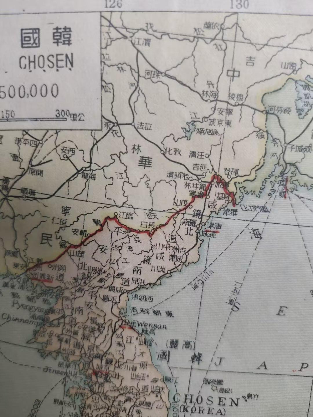 1946年韩国与中国的边界线。