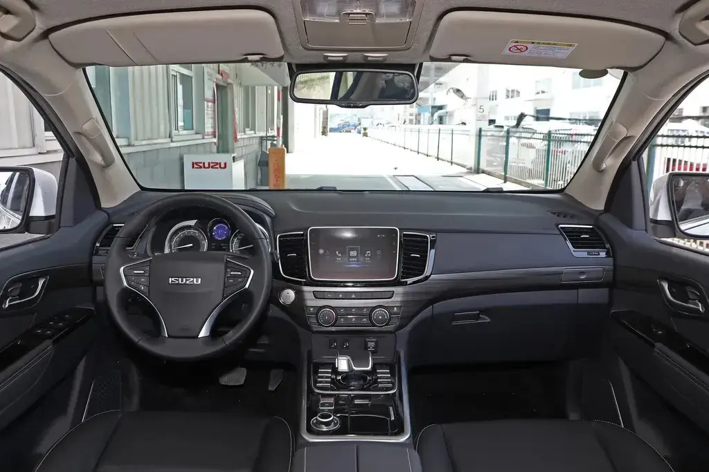 五十铃mu-X牧游侠的内饰布局比较本分,传统仪表盘和内嵌式的中控屏设计,比较良心的是整个座舱内配备大量物理按键,平时操控起来也比较方便快捷,从安全配置来看,两款车均配备主动安全预警系统和并线辅助系统,此外还有上坡辅助和陡坡缓降功能。