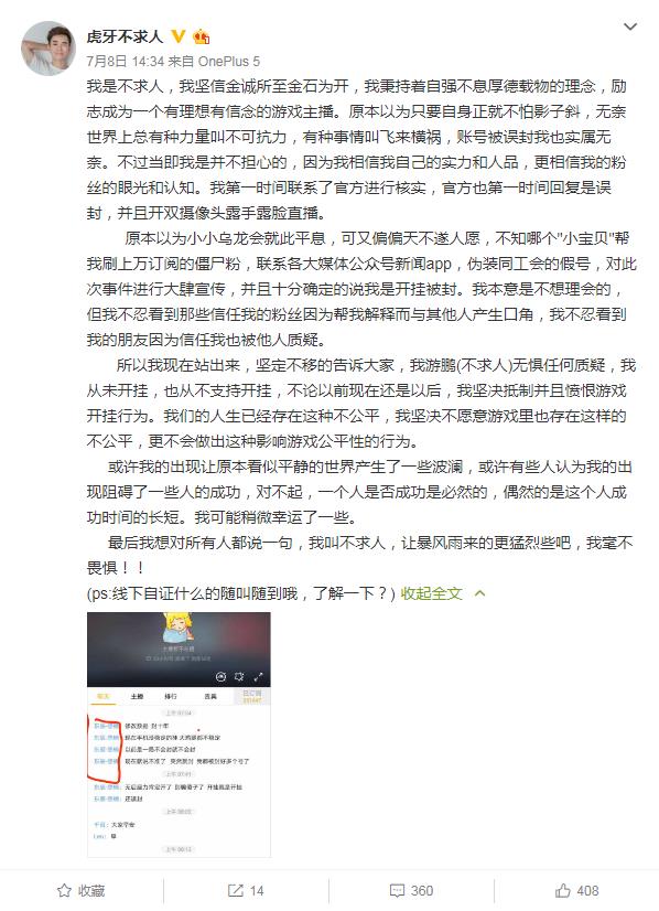 不仅粉丝有所怀疑,连官方都封账号十年。不过按不求人的说法,这是官方误封。他作为一个“有理想有信念”的主播,表示绝对不开挂并且不支持这种行为,联系官方核实官方也回应是误封。
