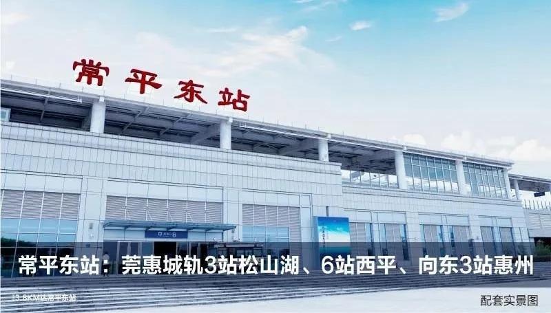 2个轻轨站:常平东站、常平南站,从常平南站坐莞惠城轨,2站到松山湖,5站到西平,7站可以到望洪枢纽换乘穗莞深城轨、佛莞城轨去往深圳、佛山等地。