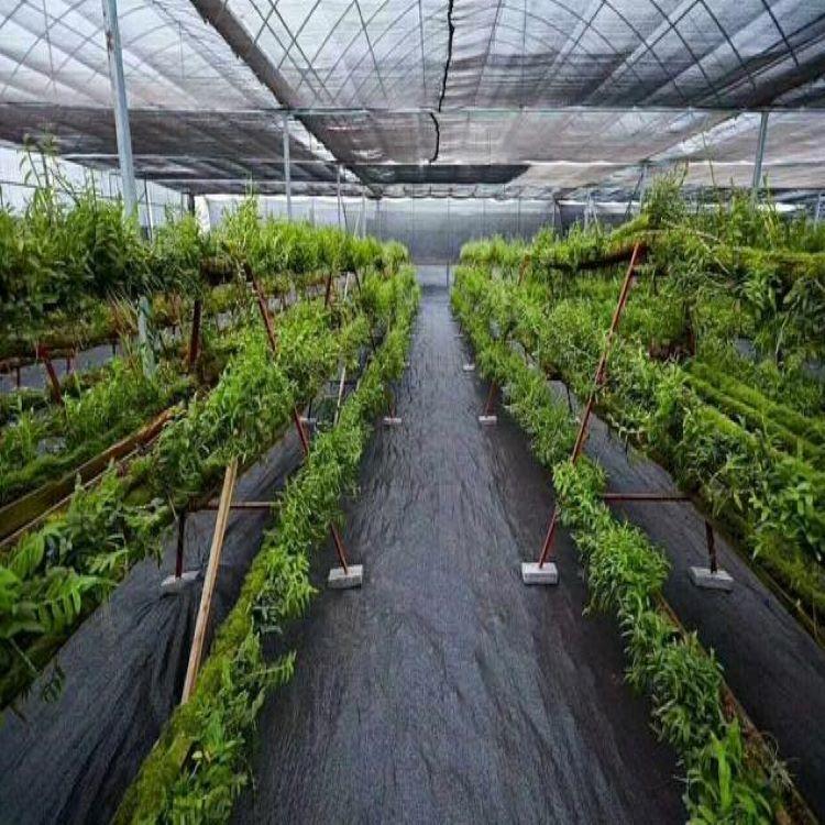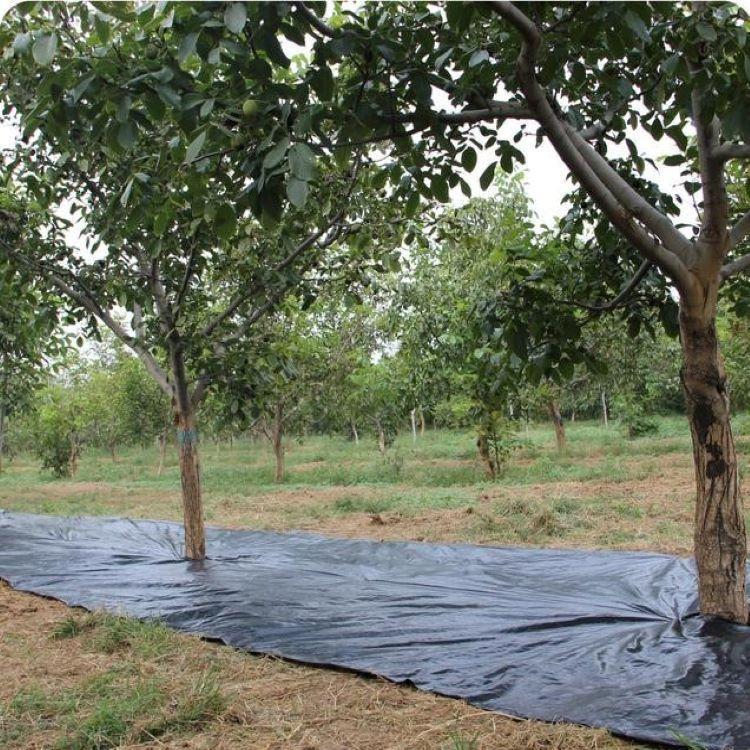 果园里铺设的防草布是由抗紫外线的聚丙烯扁丝编织而成的一种既耐摩擦又抗老化的黑色编织布。