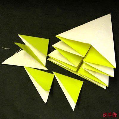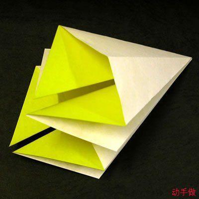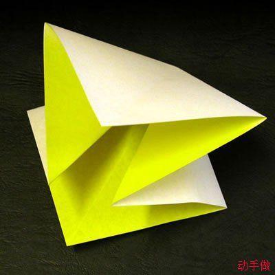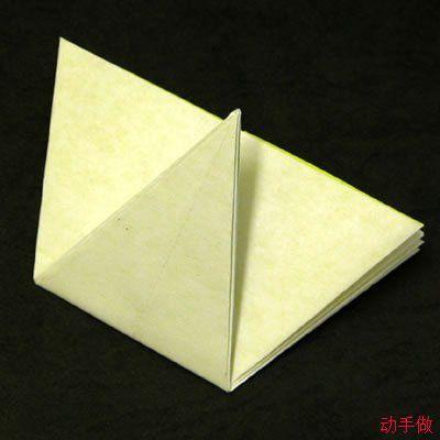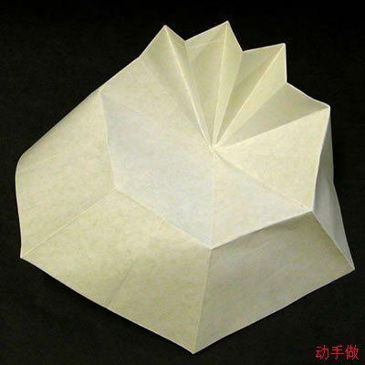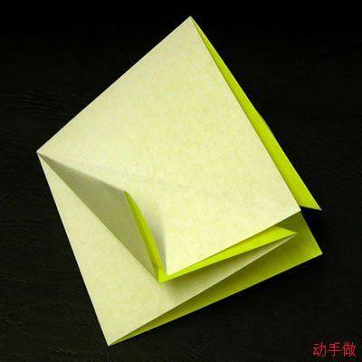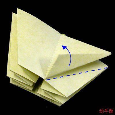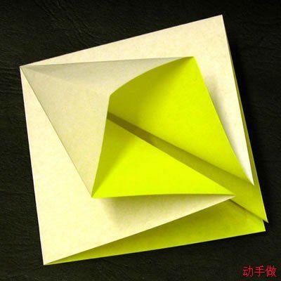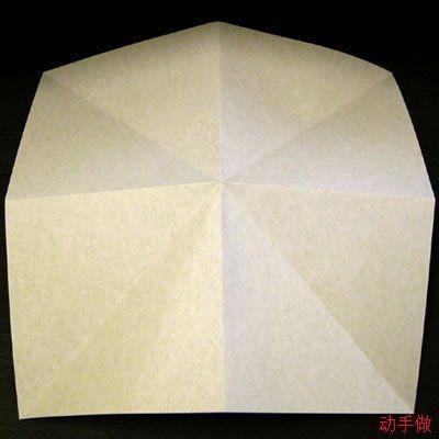 11、沿虚线把其中一边如图折叠,按相同的方法将其余的边全部折成这样。