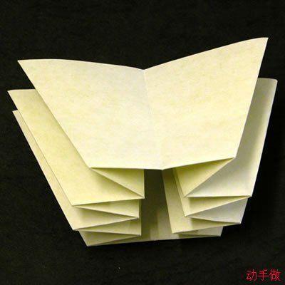 9、如图沿着折痕折出褶皱,注意无颜色的一面要向下。