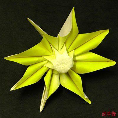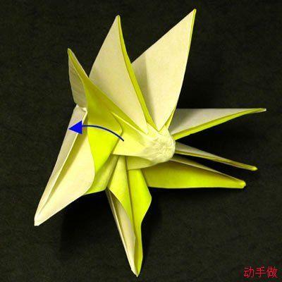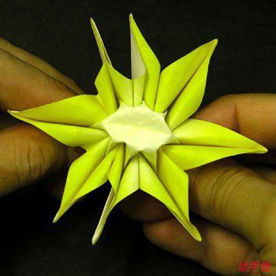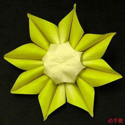 最后翻过来,将形状整理一下,这款折纸太阳花的折叠就完成