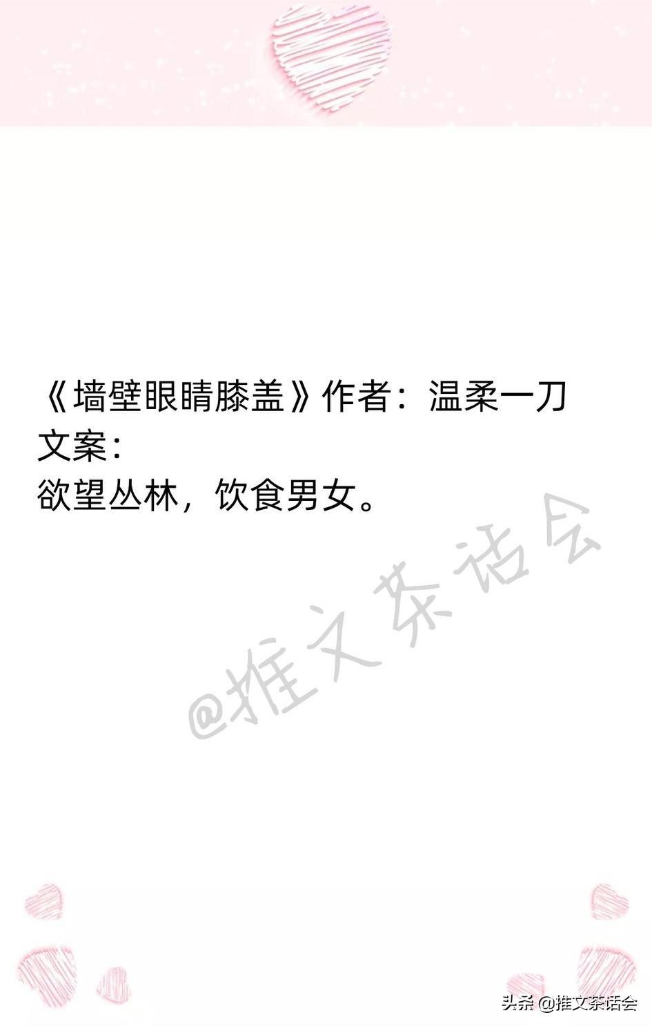最近不知道怎么了阅读量都好低,那茶茶就换个类型的文推推吧!看文案就知道啦,带肉带剧情,肉香满满,现实向熟男熟女文。哈哈,茶茶第一看墙壁眼睛膝盖的时候也不知道寓意何在,后来看英文发音才懂的,暗示性表白。