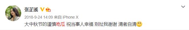 因为这部戏,张芷溪还曾被吴秀波的绯闻连累。当时吴秀波被情人陈昱霖爆料称还和某位女演员保持暧昧的关系,许多网友都开始猜测是张芷溪,正主直接出面澄清道:"祝当事人幸福,别扯我谢谢,清者自清"。
