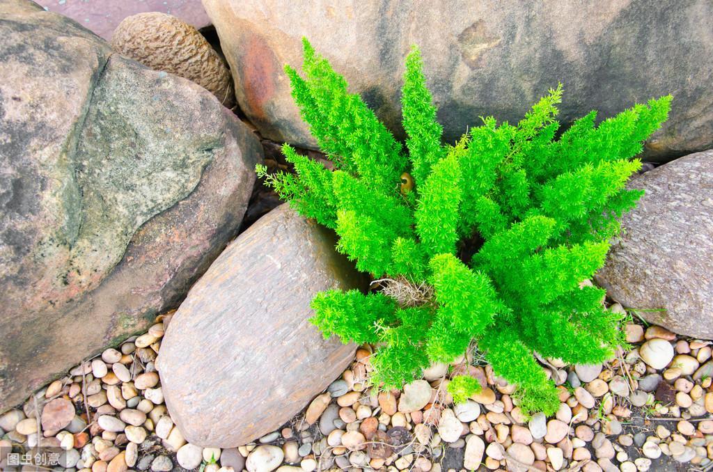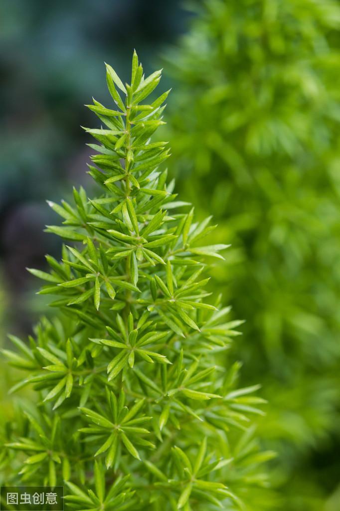 不同于文竹青翠的叶状枝平展如云片堆叠,甚为雅丽,狐尾天门冬的鲜绿色叶状枝,丛生攀缘状似圆筒形蓬松狐尾,别有几分意趣。