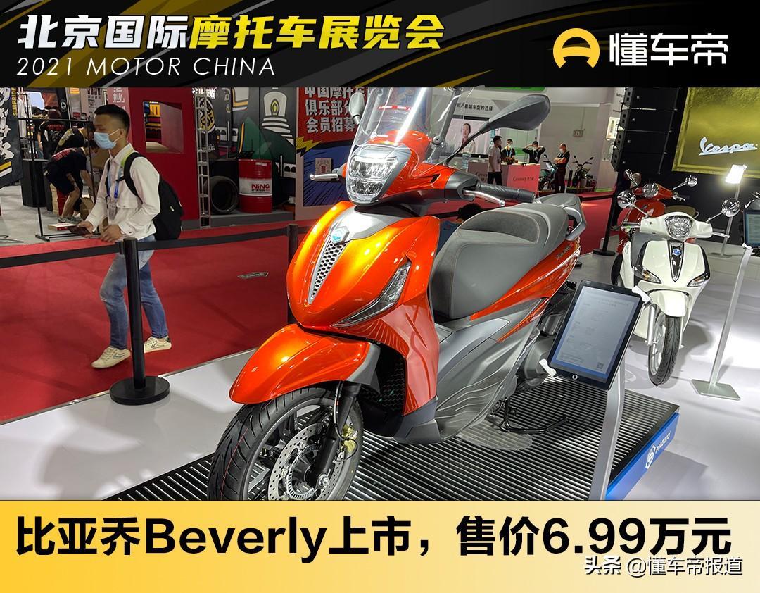 [懂车帝原创 产品] 5月28日,2021北京国际摩托车展拉开帷幕,在现场懂车帝获悉,比亚乔旗下的一辆踏板摩托车Beverly系列的两款新品正式上市,Piaggio Beverly有两种版本可供选择:Beverly及更具运动风格的Beverly S,建议零售价为6.99万元。