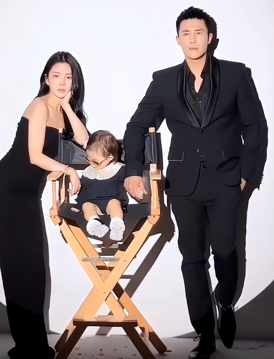 而妻子王灿则是一身黑色修身束胸礼服,秀出了她那凹凸有致的身材,尤其是她扶着椅子将自己的翘臀抬起,更是将自己S型身材展现得淋漓尽致,太过火辣魅惑了,这身材简直没得说,完全就不像是生过孩子的女人,真是令人羡慕;两人的孩子则坐在椅子上可爱的脸上带着一副墨镜,将脑袋移到妈妈身边,萌态尽显,很是可爱,长大后一定非常的漂亮,毕竟妈妈都这么美丽了,爸爸更是帅气无比,肯定不会差到哪里。