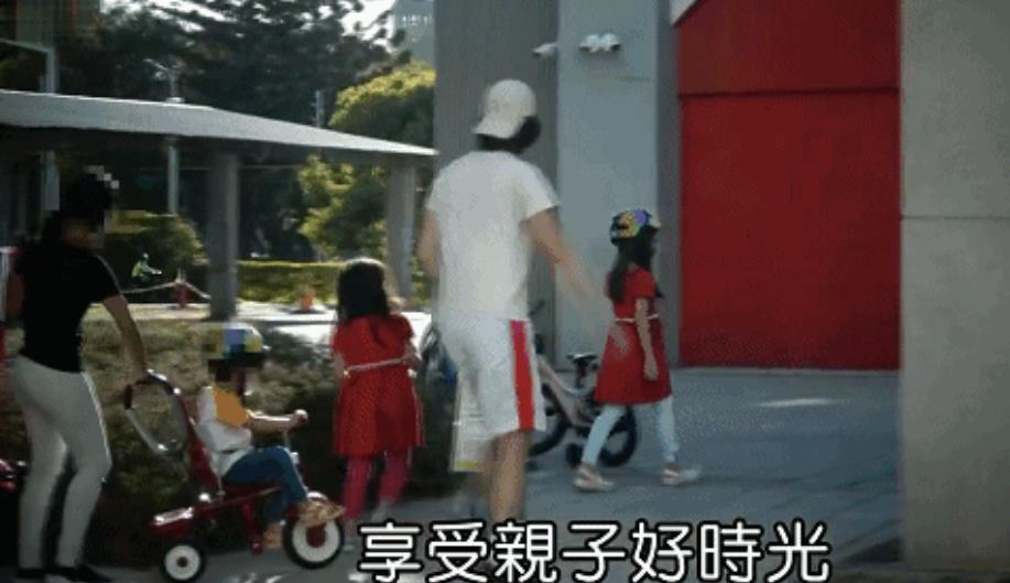 他的两个女儿则穿着红色连衣裙姐妹装,7岁的姐姐已经长大很多,大长腿比例优越,背影很有女神范,完美继承了父母的好基因。5岁的妹妹身高同样远超同龄人,乖巧可爱萌化人心。