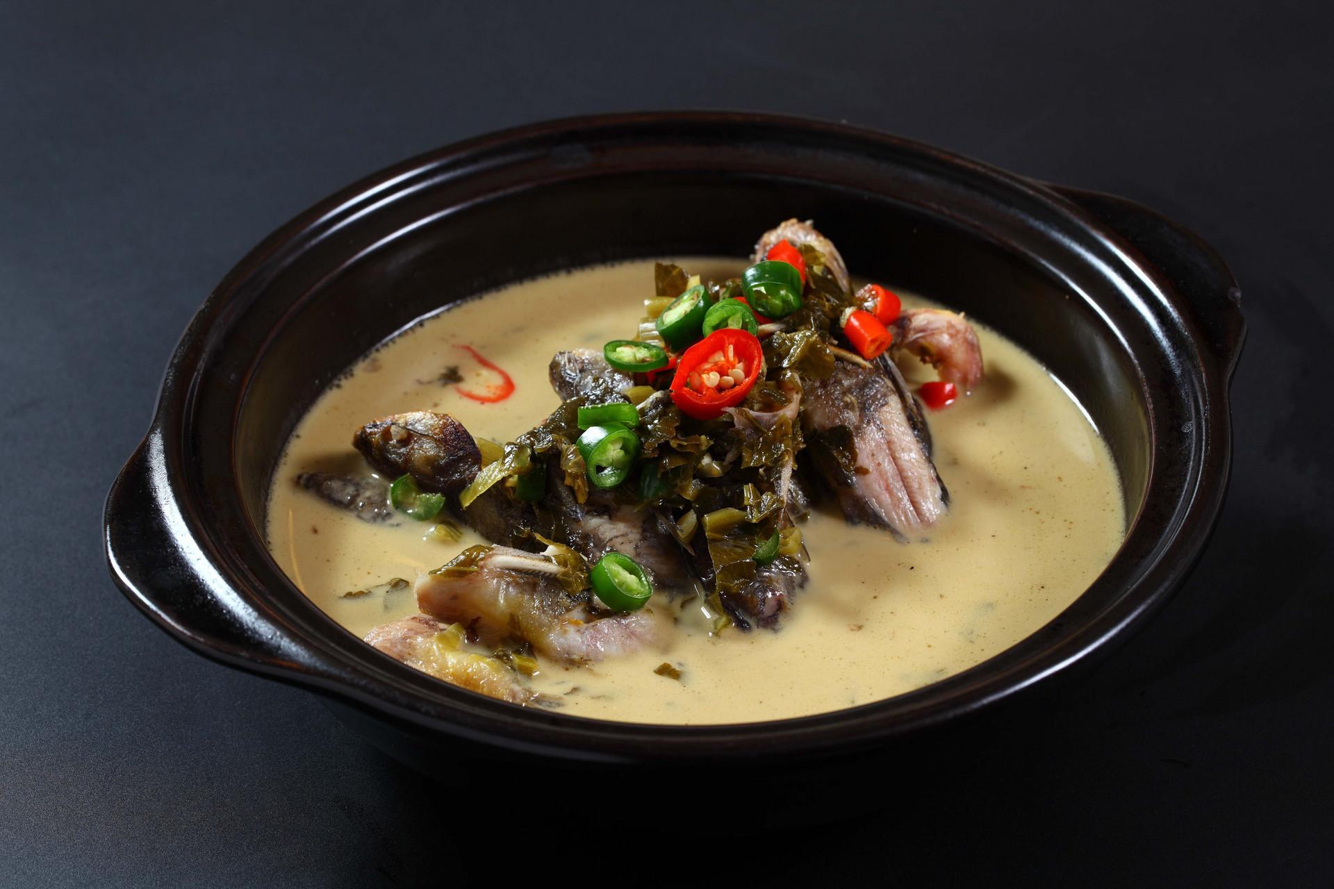 水煮黄鸭叫汤汁奶白色,加鲜紫苏、鲜红辣椒等,越吃越入味,越吃越甜美。一层油脂浮于表面,辣椒与黄鸭叫凌乱的堆在锅里,参差有致,也很美观。