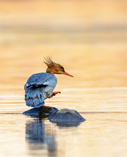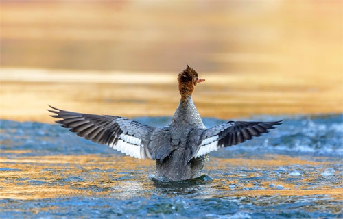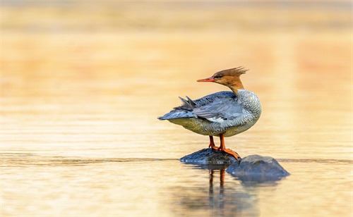 中华秋沙鸭原产中国吉林,中国特产稀有濒危鸟类,国家一级重点保护野生动物,素有鸟中“大熊猫”之称,与大熊猫,华南虎,滇金丝猴齐名。