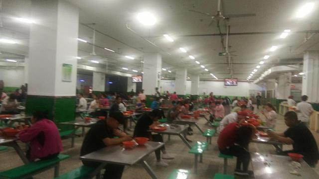 看看这饭堂环境还不错,员工们一边吃饭还可以看一会电视解一解乏,也有吃完饭就直接在桌子上趴着休息了,可想而知富士康工作的员工还是挺累的。