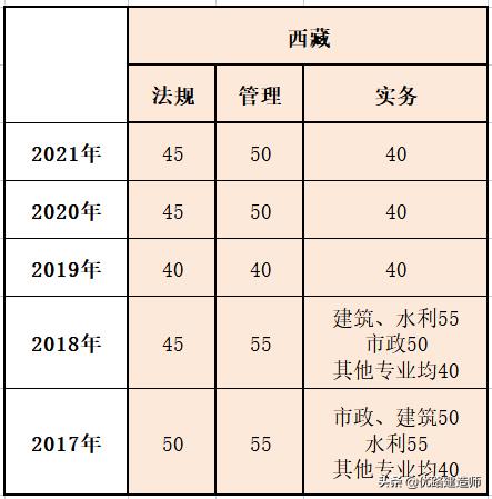 当然,少不了西藏这个有点“bug”的地区,这五年各科目的分数线没有超过60的,而且在今年的报名公告中明确指出:符合报名条件的西藏籍高校毕业生每科目考试分数线降低5分!