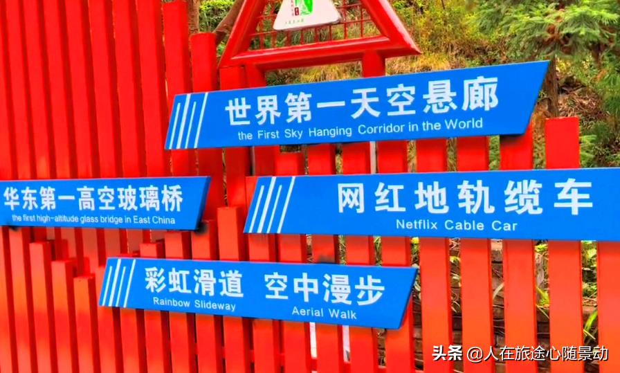 【景区亮点】:景区内的高空玻璃悬廊是世界上“最长的悬挑空中玻璃走廊”,并荣获吉尼斯世界纪录,长158米,垂直高度288米,一头连接山体,另一头完全悬空。站在玻璃上本来就胆战心惊,玻璃悬廊上还特意制作了破裂的视听效果,更让游客觉得惊险刺激。