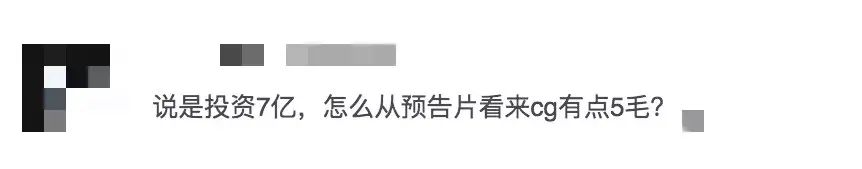 但预告呈现的特效画面,或许与画质有关,有网友提出了“五毛”的观感。