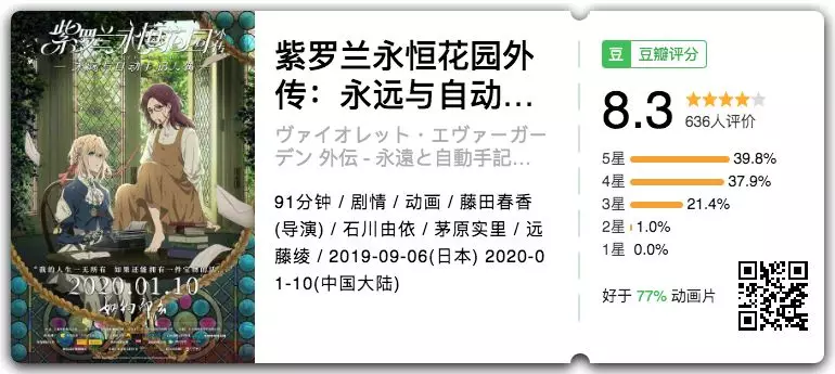 影片前作剧集豆瓣评分8.8,本次外传剧场版豆瓣评分8.3。