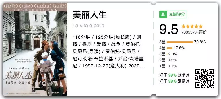 《美丽人生》颠覆了战争电影,更让我们深省幸福生活的本质和意义,是无数人心中当之无愧的影史最佳之一。