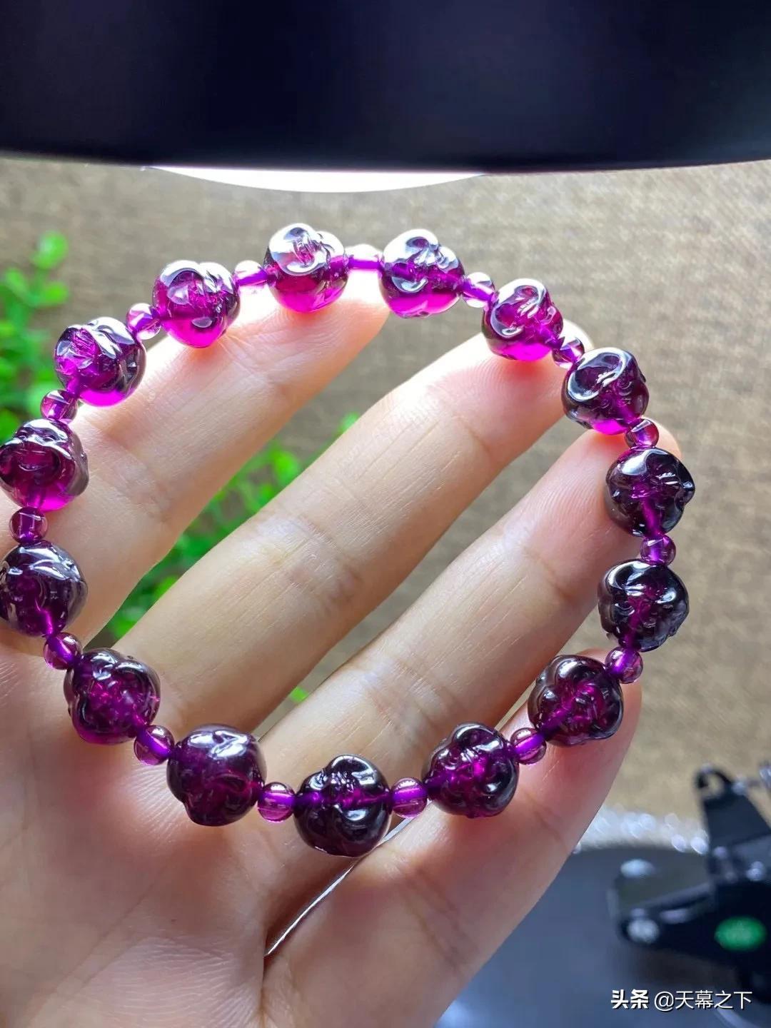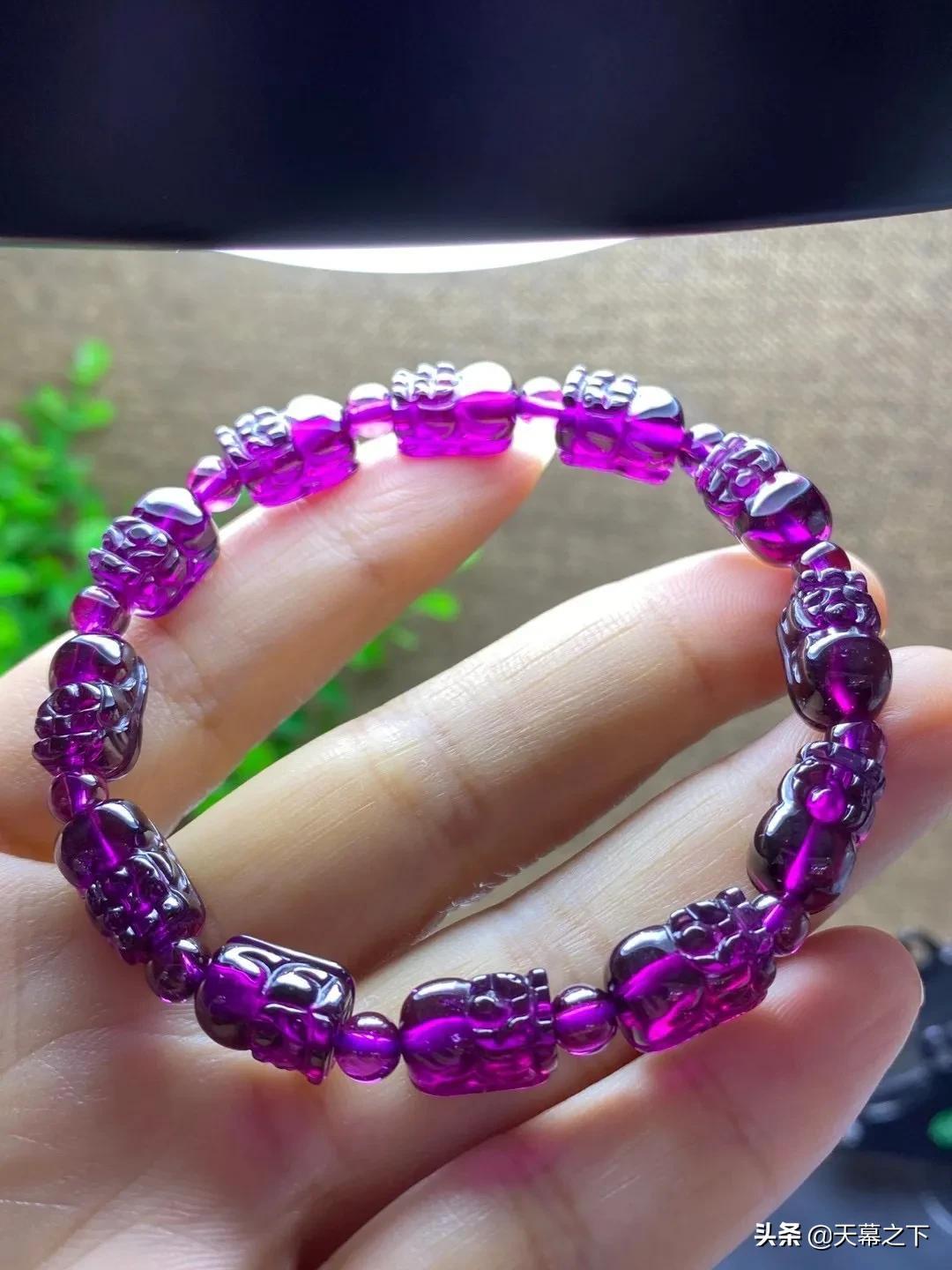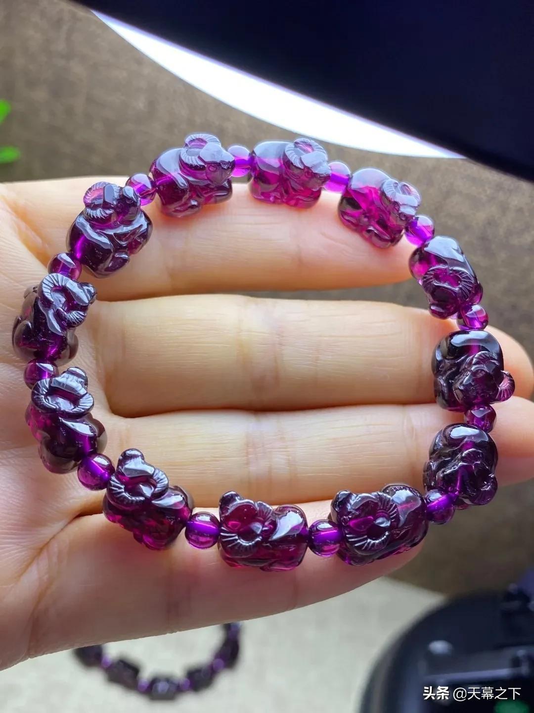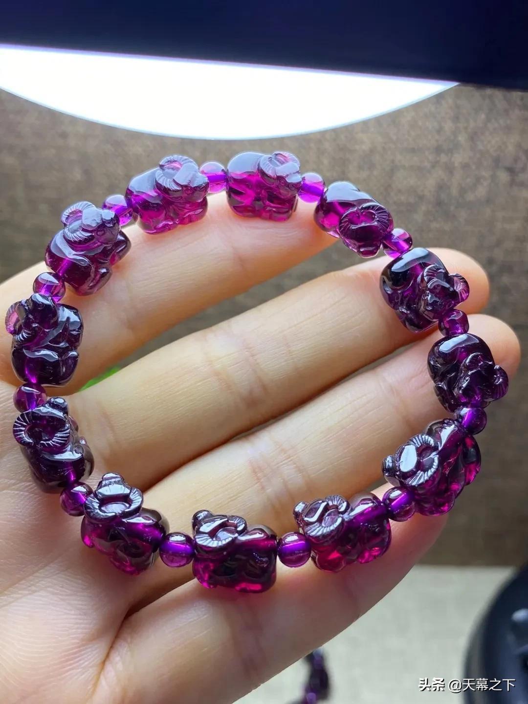 很多人不知道石榴石和紫牙乌的区别。简单介绍下:紫牙乌属于石榴石的一个比较高级的品种,在冷光灯下呈现不一样的紫色,价格比石榴石高出不少,因此独立于石榴石外,成为紫牙乌。