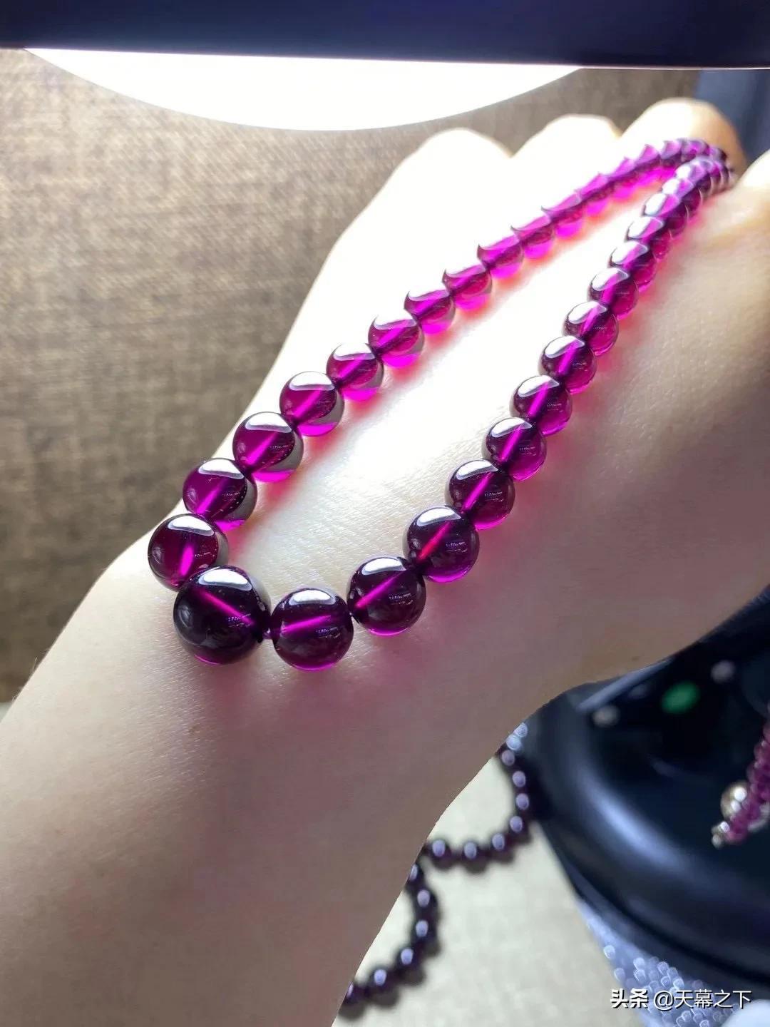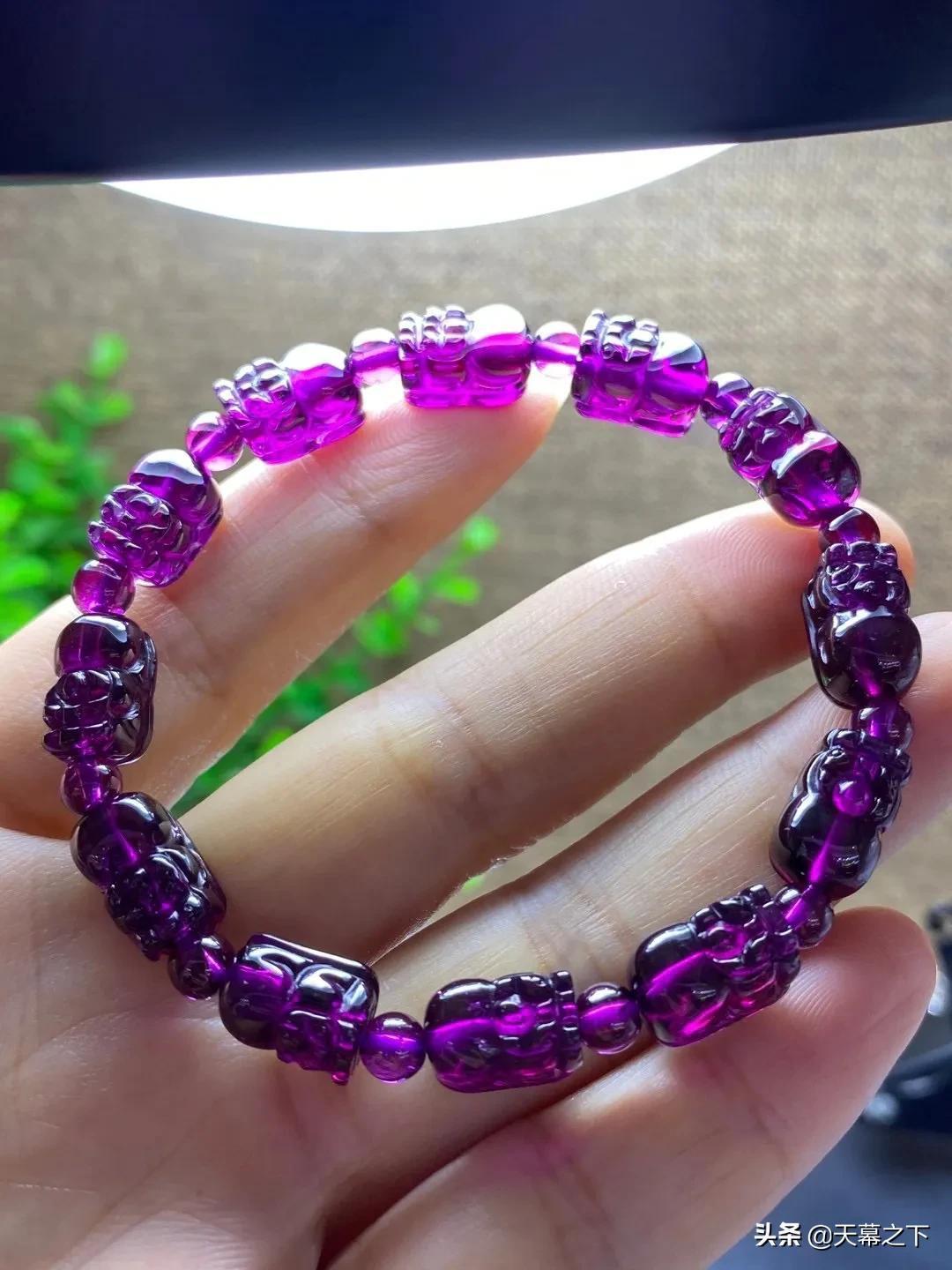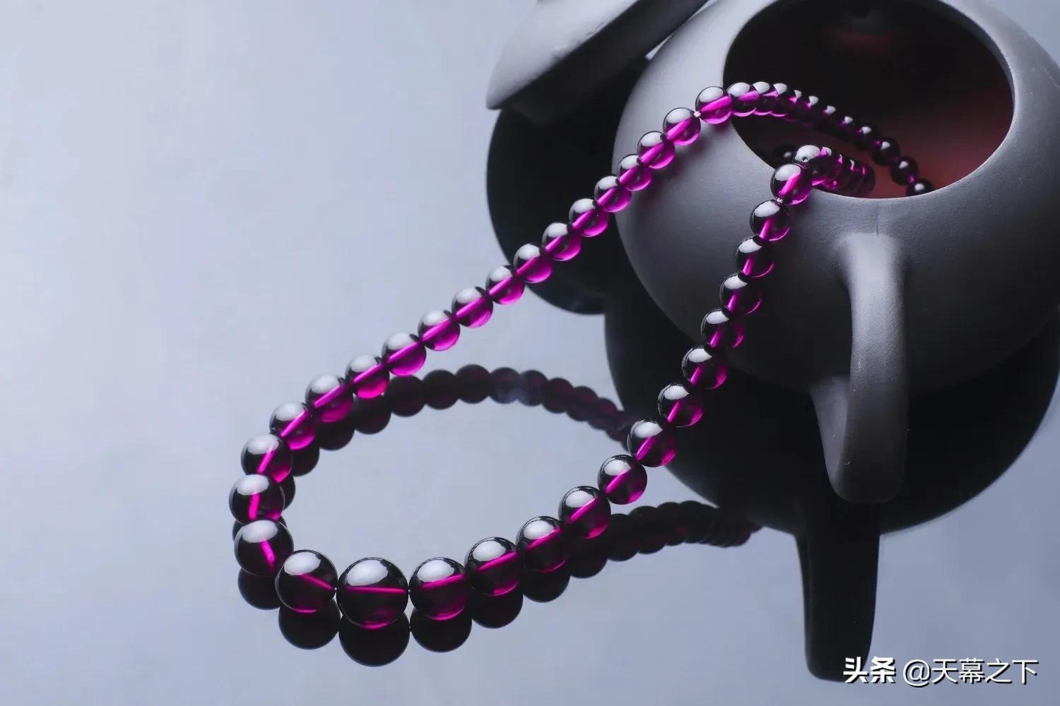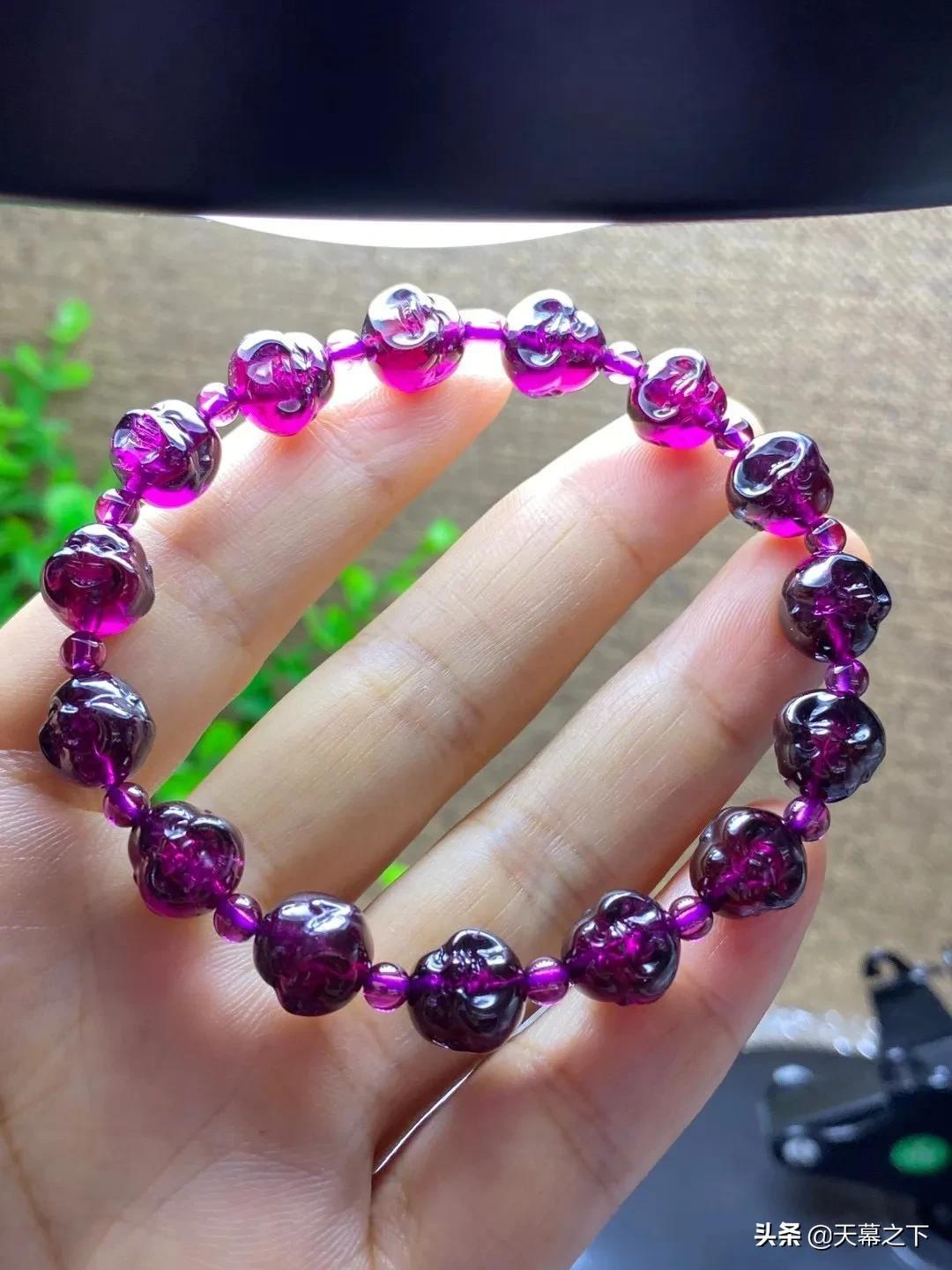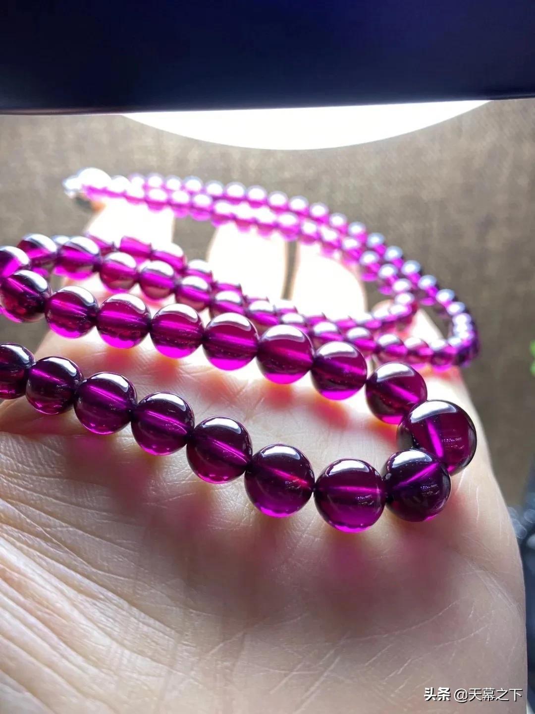 很多人不知道石榴石和紫牙乌的区别。简单介绍下:紫牙乌属于石榴石的一个比较高级的品种,在冷光灯下呈现不一样的紫色,价格比石榴石高出不少,因此独立于石榴石外,成为紫牙乌。