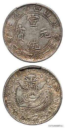 拍品描述:1911年山西省造宣统元宝库平一钱四分四厘银币一枚,Y-217/LM-501,大头龙版,背逆45度,是清末唯一标明由山西省铸造的银币,工艺略显粗糙,但风格独特,存世稀少,PCGS VF35,目前为该公司评级纪录第二名