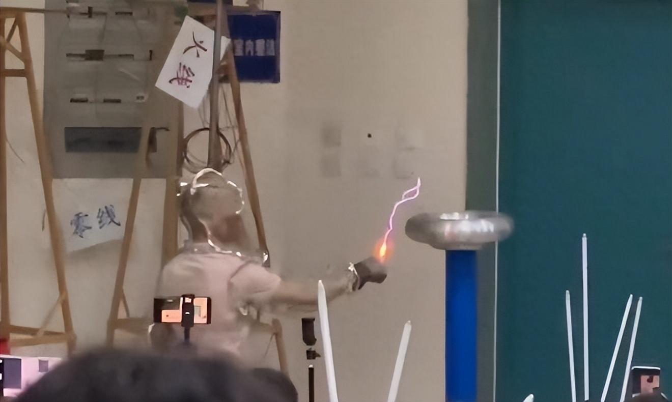在四川成都市,一位物理教师在课堂上以一种独特的方式演示了特斯拉线圈(Tesla Coil)的放电,他身穿银色的防护装备,手持荧光灯管,形象酷似《西游记》中的“银角大王”,这一演示不仅引起了学生们的热情欢呼,也迅速在网络上走红。