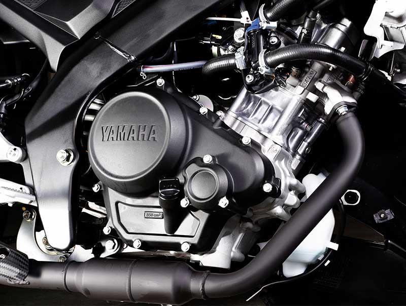 动力方面,新款R15虽然还在使用一款单缸水冷电喷发动机,但它也从原来的150变成了现在的155,并且还融入了VVA可变气门技术,采用水冷SOHC四气门设计。