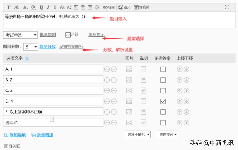 每个题可设置多个标签内容,如:题型、分值、答案解析等。还可以导出Wold进行存档保留。