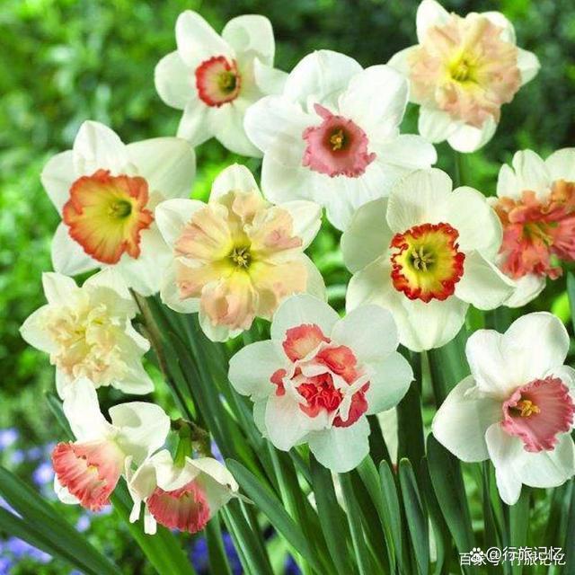 但俗称“洋水仙”的来自国外的品种,则可谓多种多样,异彩纷呈。其副冠形态多样,颜色多彩,有黄色的,也有红色、酒红色、橙色等等,一扫中国水仙清秀绝尘之姿,很是艳丽。