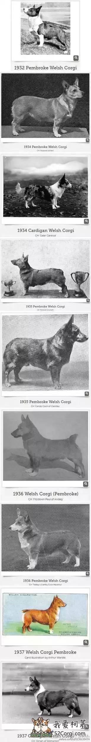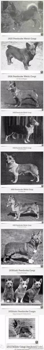 其次,他们面部的表现力完全不同。由于卡迪根属于古老犬种,他们更加稳定,从1934年开始到现在的卡迪根整体变化并不大,但是彭布罗克整体的改良就很大了。下面一系列的图片能够显示这一点。