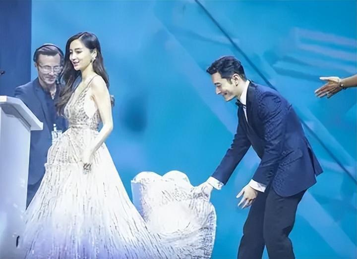 黄晓明主动弓着腰,毕恭毕敬地跟着杨颖掀裙子,而baby却一直走着,从头到尾都没有回头。看一看黄晓明。合影时,明明老公就在旁边,baby却宁愿和陌生人亲近,和黄晓明保持距离。