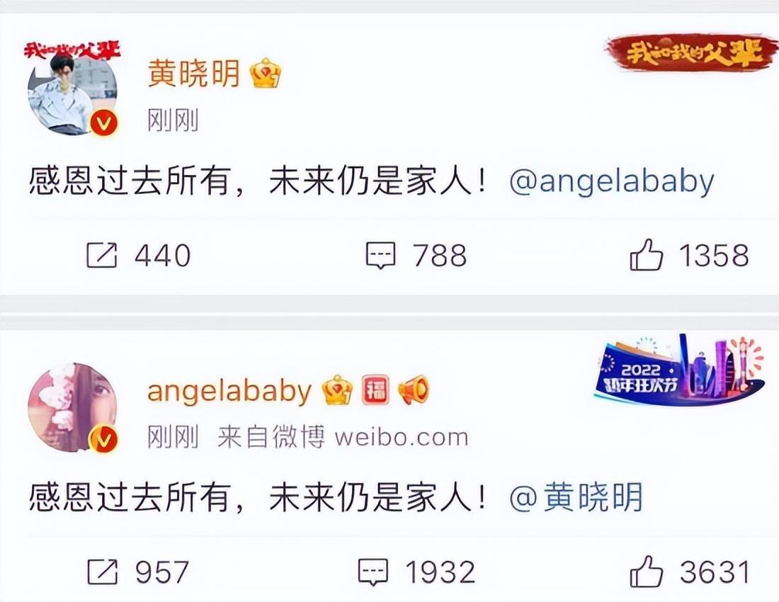 两人发布同样的文案:感恩过去所有,未来仍是家人。