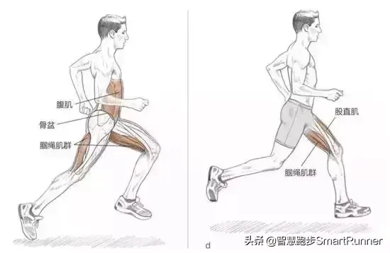 “送髋”,是指在跑步时去感觉髋部的转动,以髋为轴,核心发力,来带动腿。