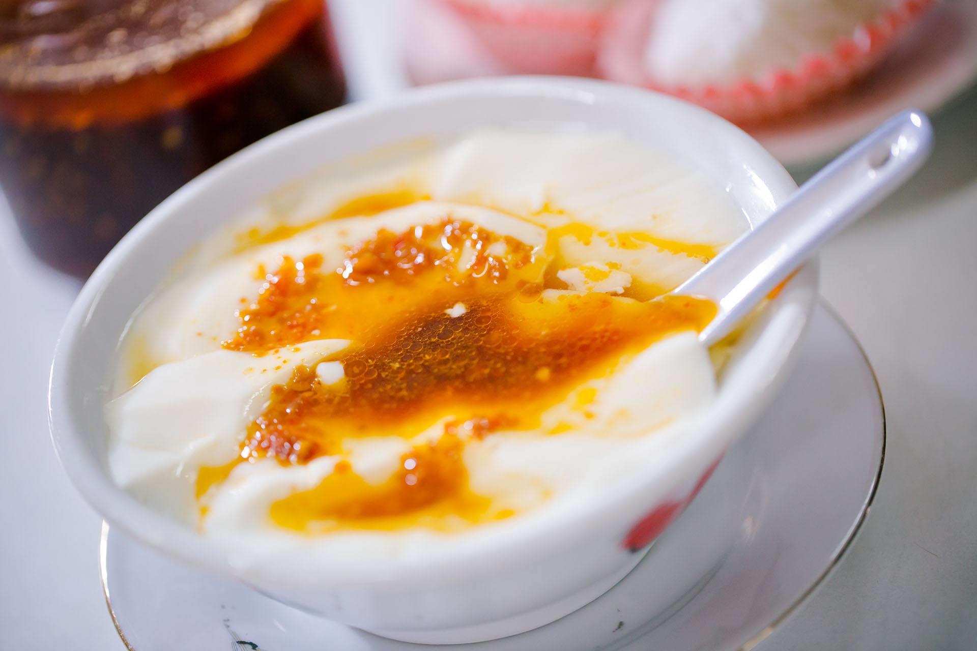 又称豆腐脑,是一道著名的汉族传统小吃,可分为甜、咸两种吃法。一般而言,中国南方主要以甜食为主(甜豆腐花),而中国北方主要以咸食为主(咸豆腐脑)。