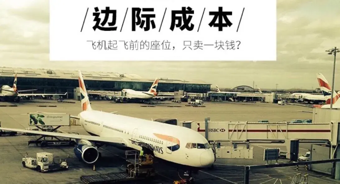 一架飞机的额定载客人数是 100人,现在已经坐了 80 个人,如果再增加一位乘客,会增加多少成本呢?几乎没有增加,不过就是一份航空餐。而这架飞机的第一位乘客增加的几乎是整趟航班的成本。所谓的边际成本,夸张一点儿来说就是:飞机起飞前的座位,理论上可以只卖一元。