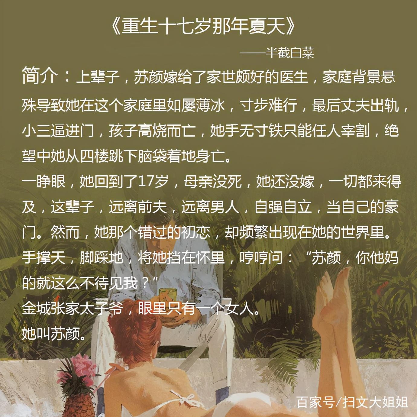 3.《重生十七岁那年夏天》作者:半截白菜